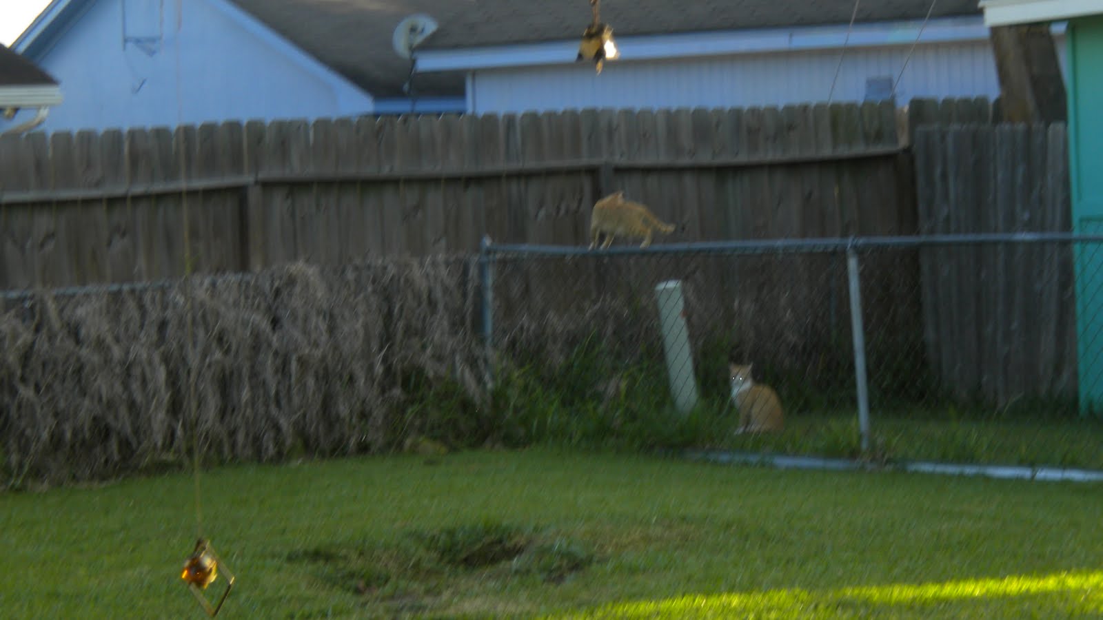 So I started chasing him across the yard and he ran up the fence. Od he was so fast.
